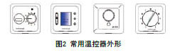 各厂家生产的温控器,虽在原理、构造上有所不同,但在外形上都是按照86×86标准尺寸制造的。有的为温度旋钮,有的还可以简单编程。外形参见图2。